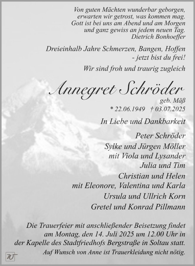 Frau Annegret Schröder geb. Mäss
