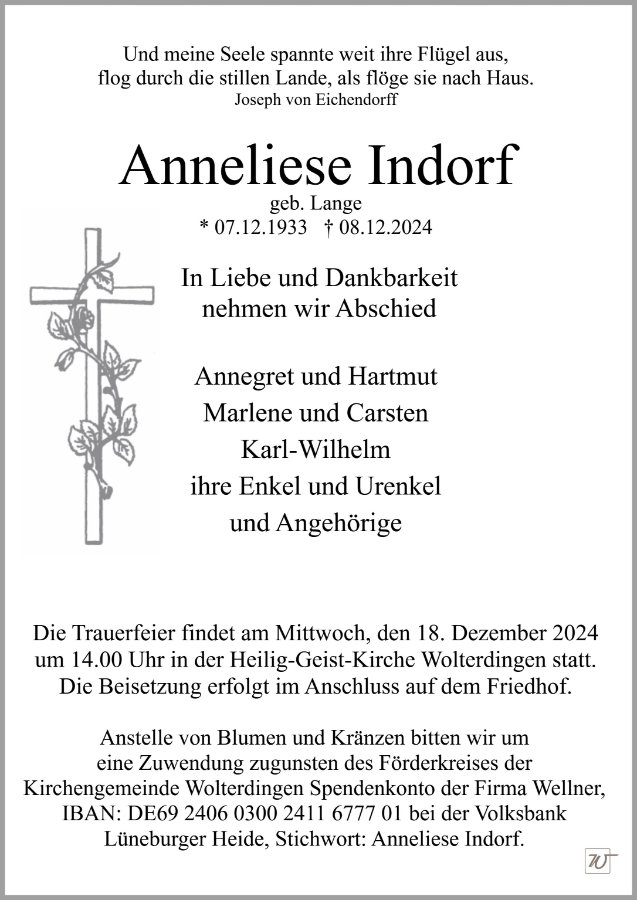 Frau Annelise Indorfgestorben am 8. Dezember 2024
