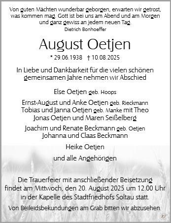 in diesen Tagen fühlen wir mit Ihnen und wünschen Ihnen von Herzen, dass Sie aus den glücklichen Erinnerungen Kraft schöpfen, um positiv in die Zukunft zu gehen. Diese Gedenkseite möge Ihnen dabei helfen, Ihre Trauer zu teilen und das Andenken gemeinsam wachzuhalten.