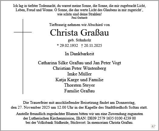 wir wünschen Ihnen für die kommende Zeit viel Kraft und dass es Ihnen gelingt, dankbar auf die positiven Erinnerungen zurückzublicken. Diese Gedenkseite möge Ihnen dabei helfen, Ihre Trauer zu teilen und das Andenken gemeinsam wachzuhalten.