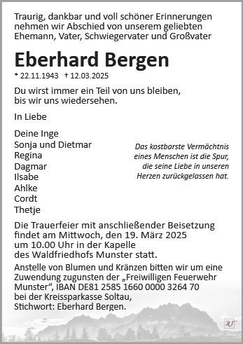 wir wünschen Ihnen von Herzen viel Kraft, dass Sie Menschen um sich haben, die Ihnen in dieser schweren Zeit beistehen und Halt geben. Zusätzlich können Sie auf dieser Gedenkseite Erinnerungen teilen und so das Andenken gemeinsam wachhalten.