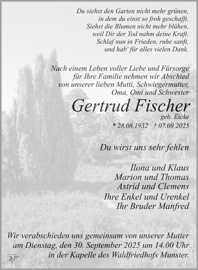wir wünschen Ihnen von Herzen viel Kraft, dass Sie Menschen um sich haben, die Ihnen in dieser schweren Zeit beistehen und Halt geben. Zusätzlich können Sie auf dieser Gedenkseite Erinnerungen teilen und so das Andenken gemeinsam wachhalten.