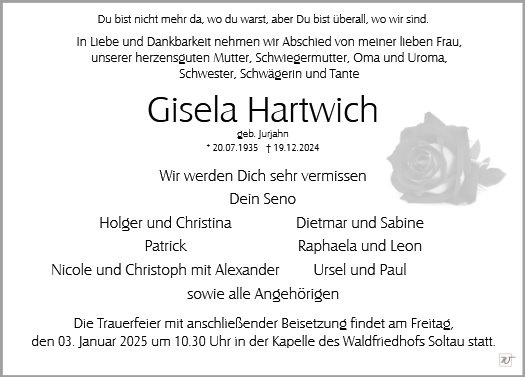 Frau Gisela Hartwich geb. Jurjahn