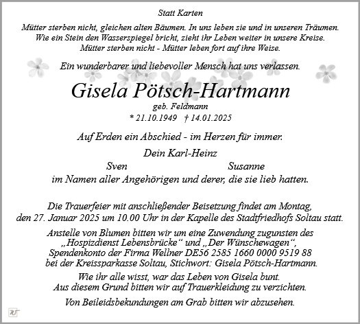 Frau Gisela Pötsch-Hartmann geb. Feldmann