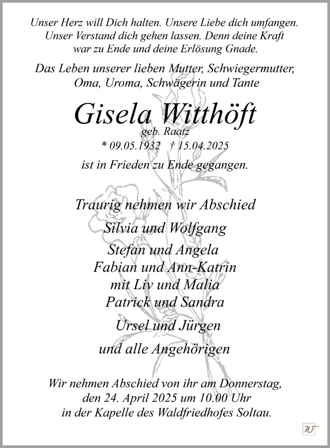 Frau Gisela Witthöft geb. Raatz