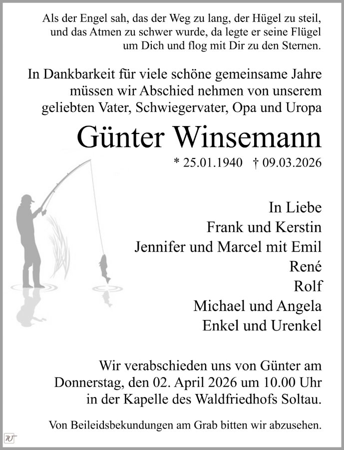 in dieser Zeit des Schmerzes wünschen wir Ihnen Kraft, den Verlust im Kreise Ihrer Liebsten zu verarbeiten. Als Zeichen unserer Anteilnahme und des Gedenkens entzünden wir dieses erste Licht. Möge diese Gedenkseite Ihnen helfen, Erinnerungen zu teilen und so das Andenken gemeinsam wachzuhalten.
