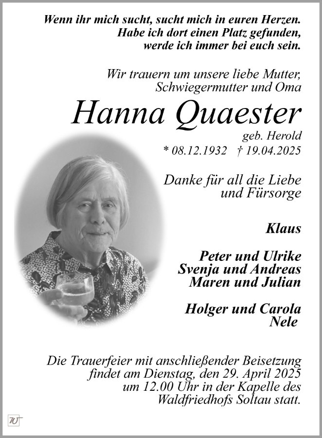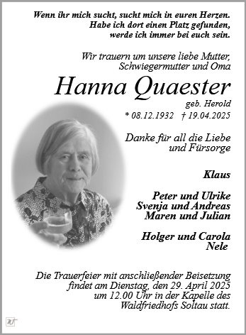 Frau Hanna Quaester geb. Herold