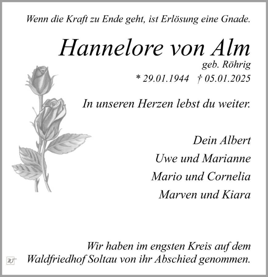 Frau Hannelore von Alm geb. Röhrig