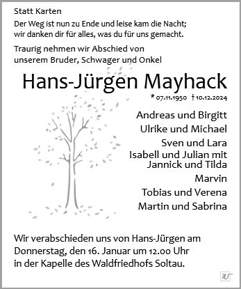 Wir werden Hans-Jürgen immer ein Andenken bewahren!