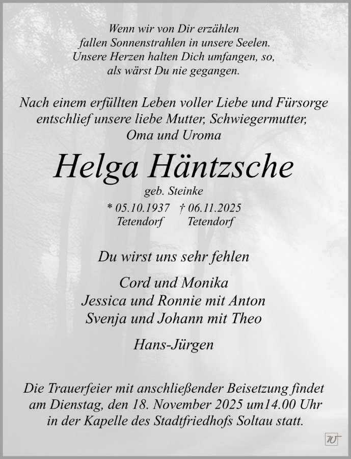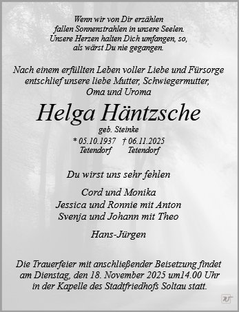 Frau Helga Häntzsche geb. Steinke