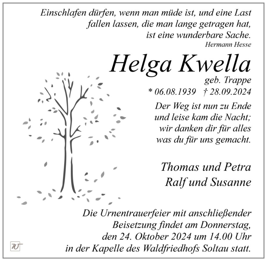 geboren am 6. August 1939 in Soltau gestorben am 28. September 2024 in Soltau