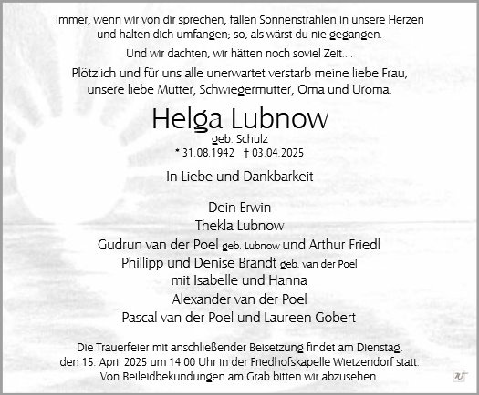Frau Helga Lubnow geb. Schulz