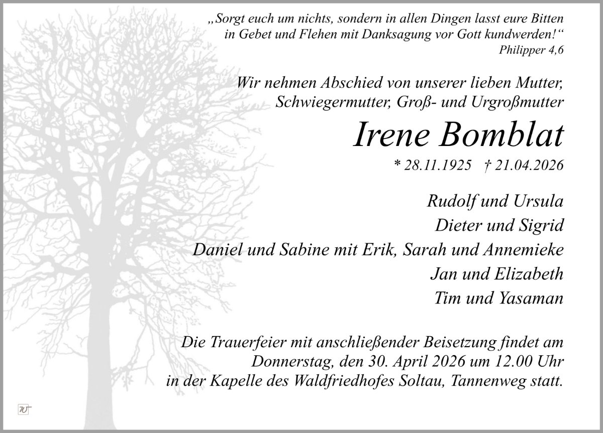Frau Irene Bomblat geb. Neppert