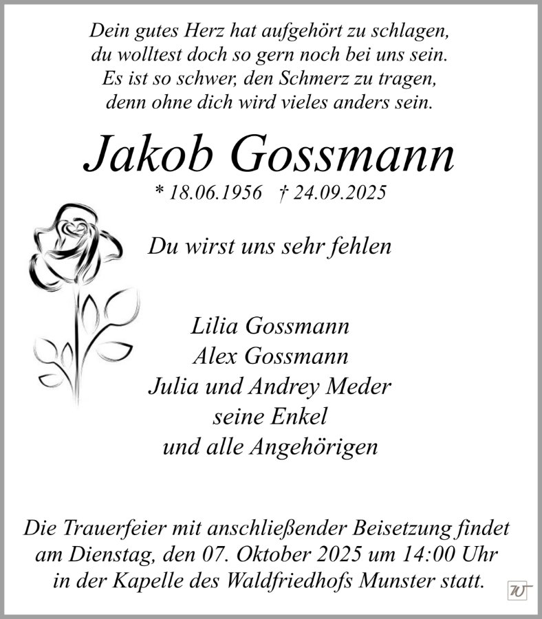 Herr Jakob Gossmanngestorben am 24. September 2025