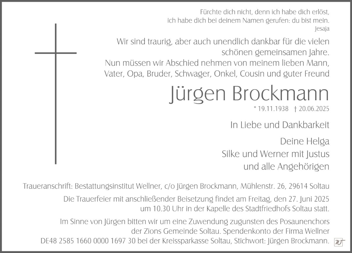 Herr Jürgen Brockmanngestorben am 20. Juni 2025