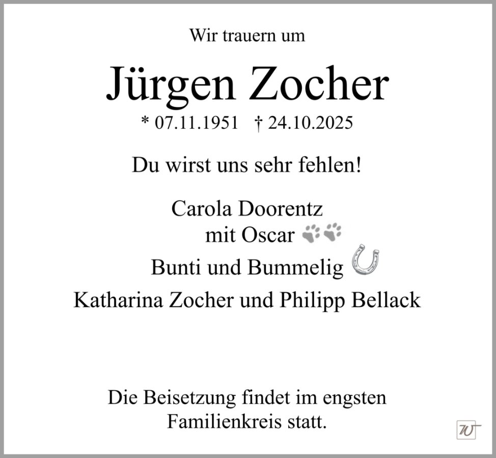 Herr Jürgen Zochergestorben am 24. Oktober 2025
