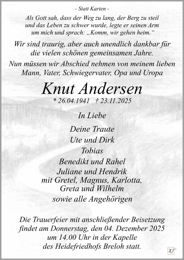 in diesen Tagen fühlen wir mit Ihnen und wünschen Ihnen von Herzen, dass Sie aus den glücklichen Erinnerungen Kraft schöpfen, um positiv in die Zukunft zu gehen. Diese Gedenkseite möge Ihnen dabei helfen, Ihre Trauer zu teilen und das Andenken gemeinsam wachzuhalten.