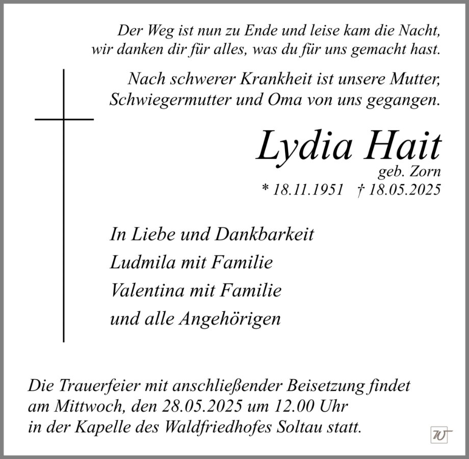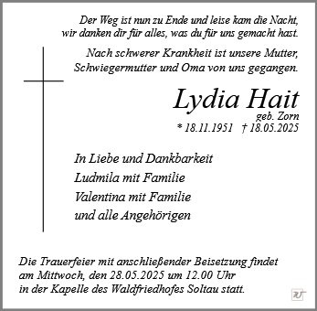 Frau Lydia Hait geb. Zorn