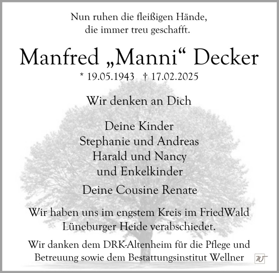Manfred Deckergestorben am 17. Februar 2025