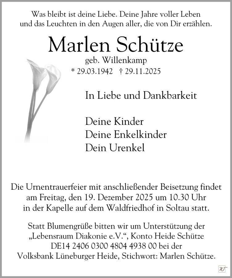 Frau Marlen Schütze geb. Willenkamp
