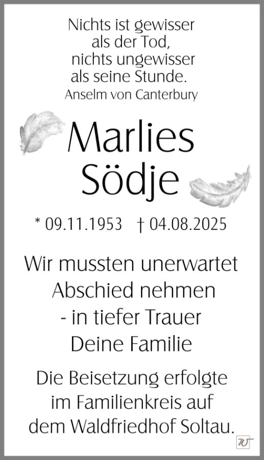 Marlies Södjegestorben am 4. August 2025