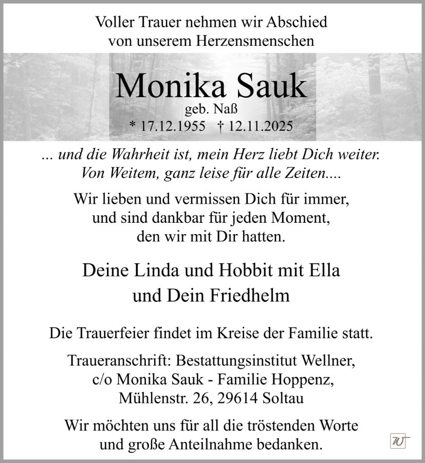 In Stillen Gedenken an Monika Sauk ,