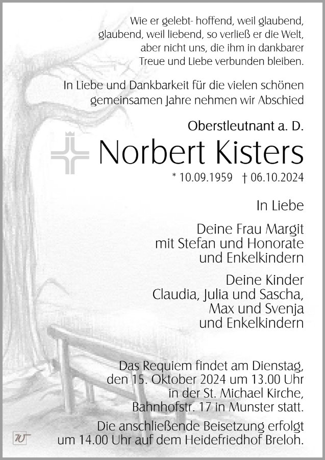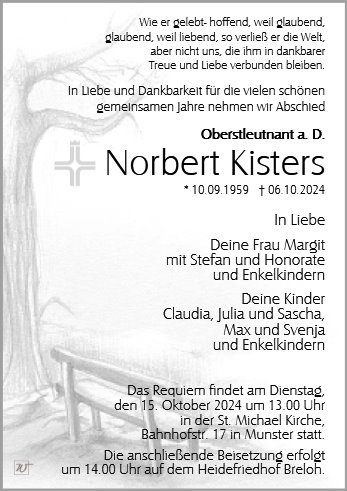Ihnen, liebe Angehörige, wünschen wir Stärke und Zuversicht. Der liebe Gott wird für Norbert einen Platz an seiner Seite haben.