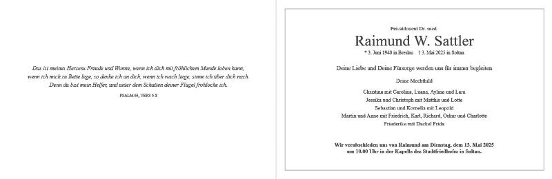 wir wünschen Ihnen für die kommende Zeit viel Kraft und dass es Ihnen gelingt, dankbar auf die positiven Erinnerungen zurückzublicken. Diese Gedenkseite möge Ihnen dabei helfen, Ihre Trauer zu teilen und das Andenken gemeinsam wachzuhalten.