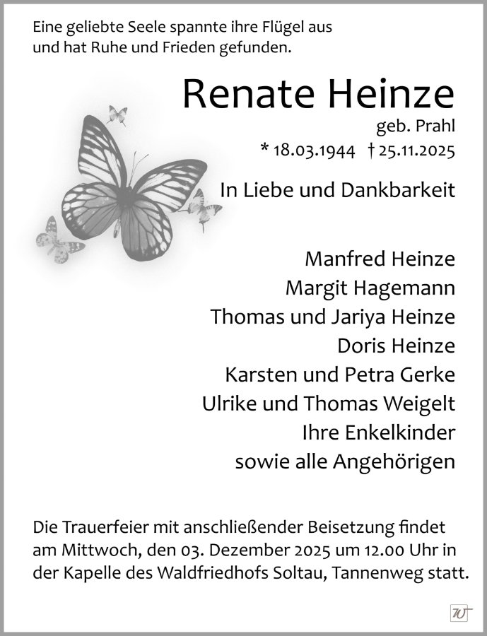 Frau Renate Heinze geb. Prahl