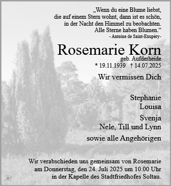 in diesen Tagen fühlen wir mit Ihnen und wünschen Ihnen von Herzen, dass Sie aus den glücklichen Erinnerungen Kraft schöpfen, um positiv in die Zukunft zu gehen. Diese Gedenkseite möge Ihnen dabei helfen, Ihre Trauer zu teilen und das Andenken gemeinsam wachzuhalten.