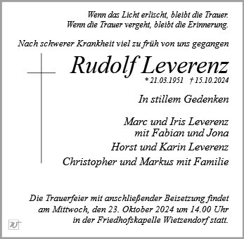 in dieser Zeit des Schmerzes wünschen wir Ihnen Kraft, den Verlust im Kreise Ihrer Liebsten zu verarbeiten. Als Zeichen unserer Anteilnahme und des Gedenkens entzünden wir dieses erste Licht. Möge diese Gedenkseite Ihnen helfen, Erinnerungen zu teilen und so das Andenken gemeinsam wachzuhalten.