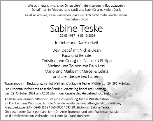 Ich habe Dich als sehr herzlichen Menschen kennlernen dürfen und Du bist und bleibst in meinem Herzen.