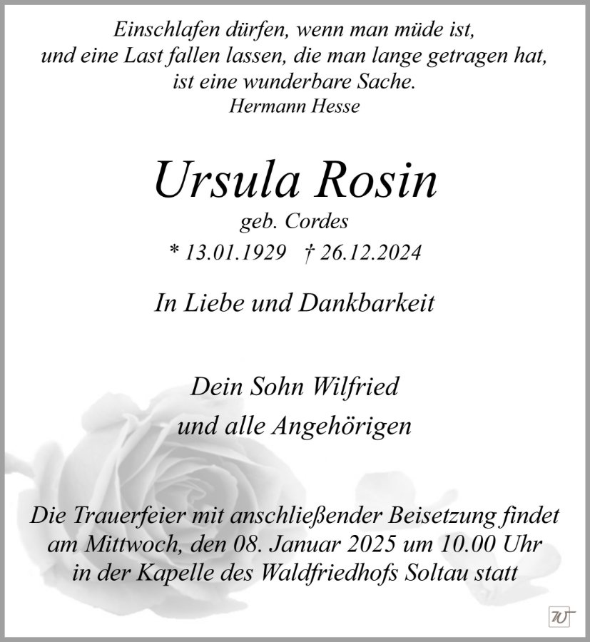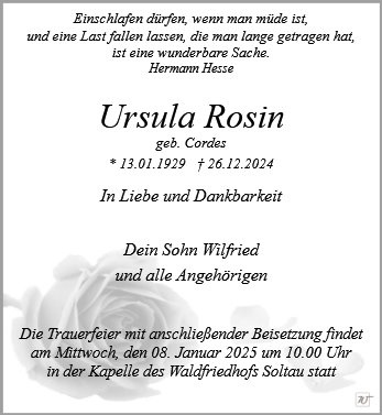 Frau Ursula Rosin geb. Cordes