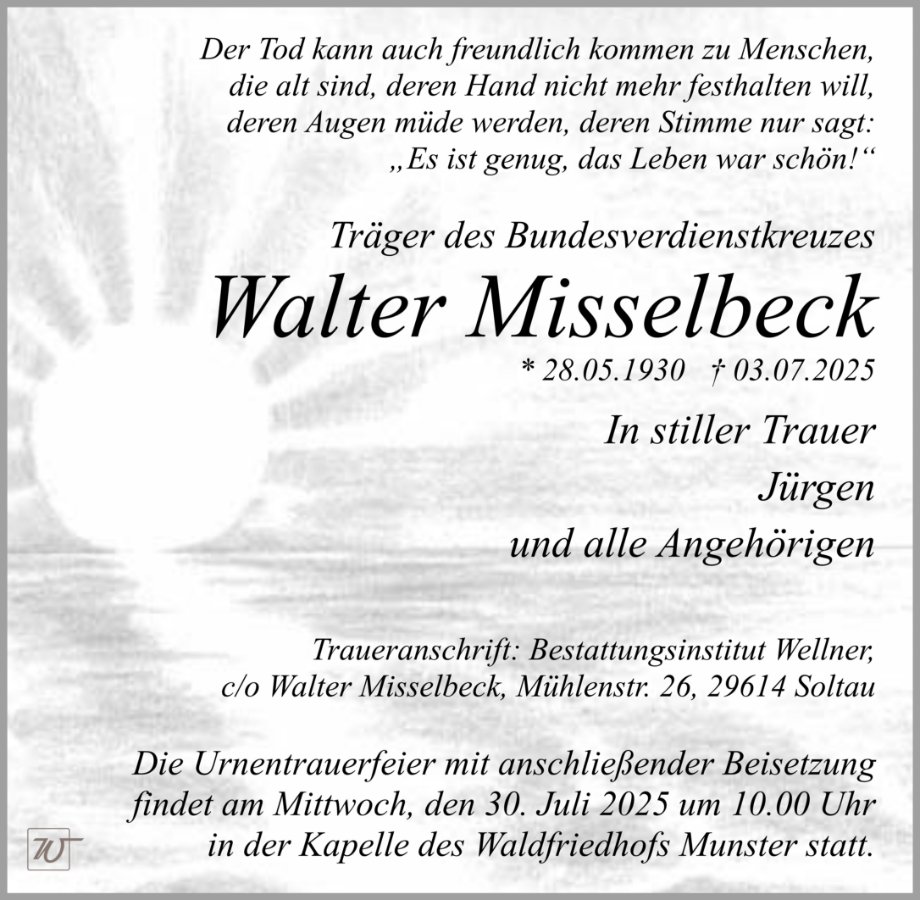 Walter Misselbeckgestorben am 3. Juli 2025